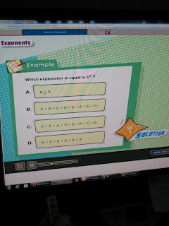 Josh is chugging along in World History, Intro to Physics and Math. Here he is trying out Time4Learning website. He's working on exponents (and is not very thrilled about the picture taking, as always).